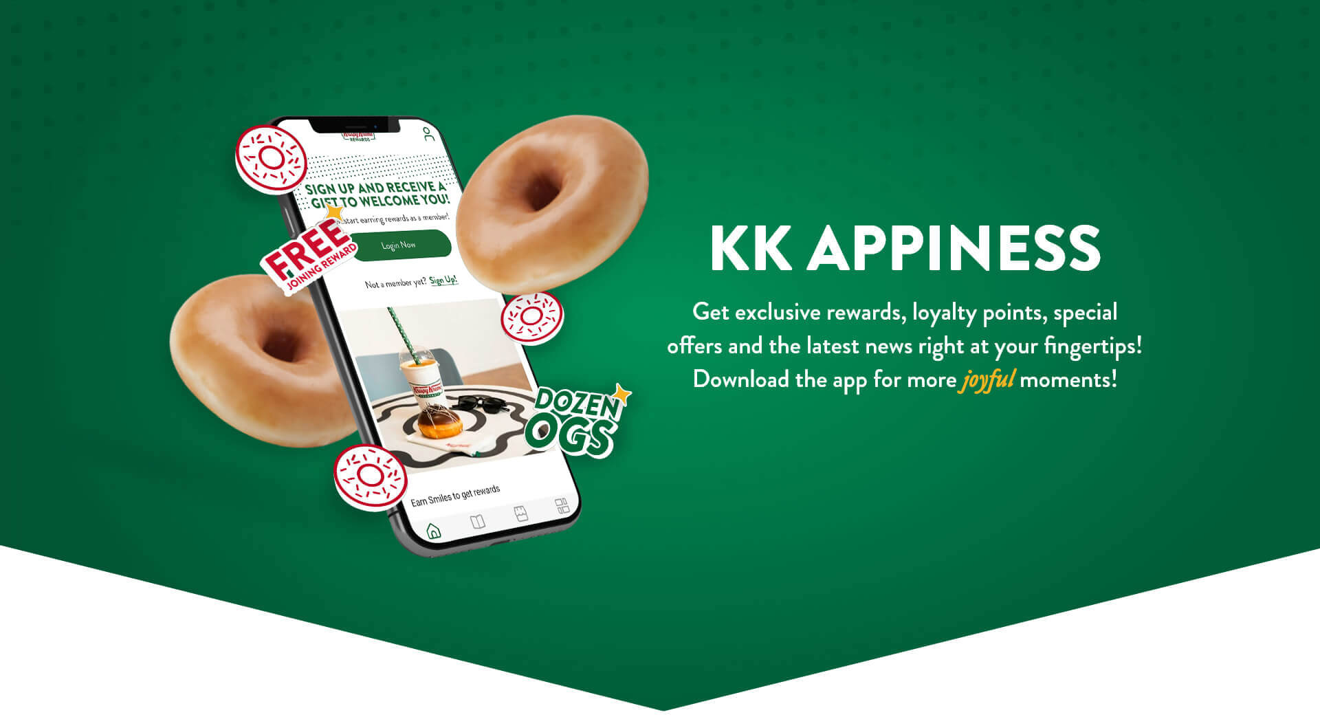 Join our joyful world of “App-iness” and get exclusive rewards, loyalty points, special offers and the latest KK news right at your fingertips with the official Krispy Kreme Switzerland app.